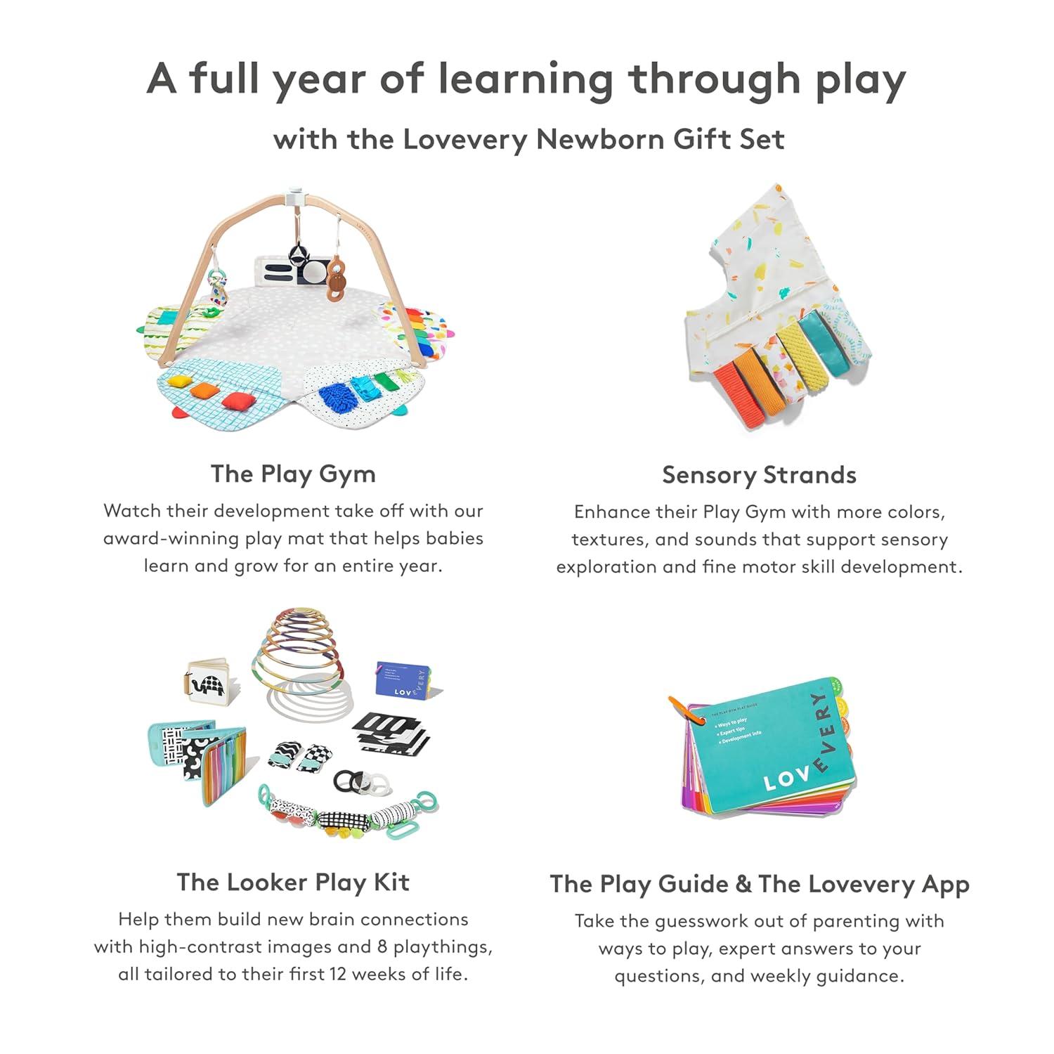 LOVEVERY, The Newborn Gift Set, Play Gym with Sensory Strands and Looker Play Kit, Baby Development Essentials, Ages 0+