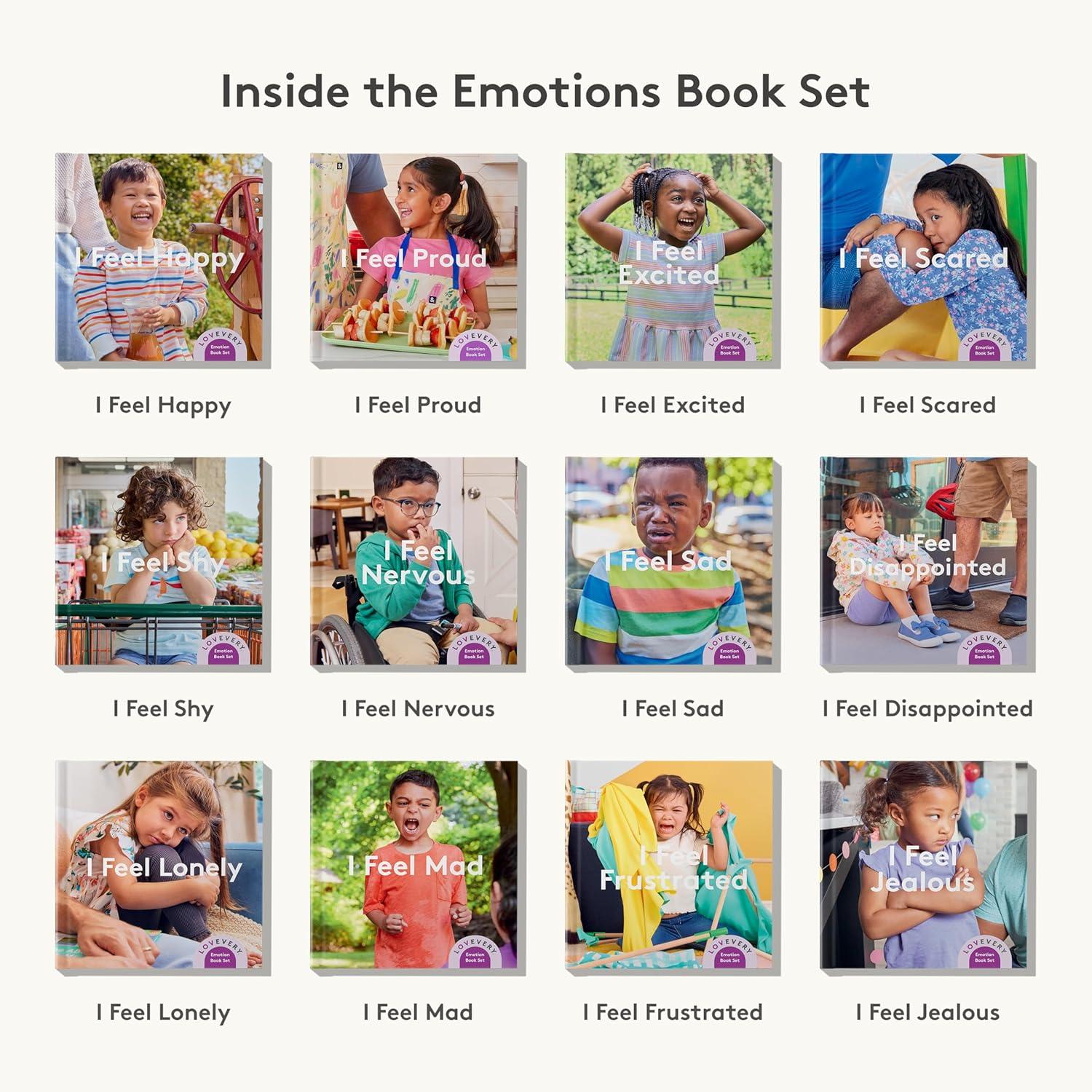 The Emotion Book Set, 12 Books ( Happy, Proud, Excited, Scared, Shy, Nervous, Sad, Disappointed, Lonely, Mad, Frustrated, Jealous) by Lovevery